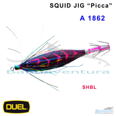The Duel Picca® is a technical squid jig with a hydrodynamic fish-shaped (sutte) design, engineered to provide irresistible visual attraction. Its main feature is the sparkling tinsel effect, which reflects light to trigger aggressive strikes from cephalopods.