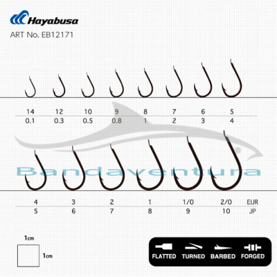 O Hayabusa CHN121 BN é um anzol de alta performance, reconhecido mundialmente pela sua eficácia em competições de pesca. Este modelo caracteriza-se pela sua haste de palheta, o formato preferido pelos pescadores experientes que procuram um empate mais discreto e uma apresentação do isco perfeitamente alinhada.