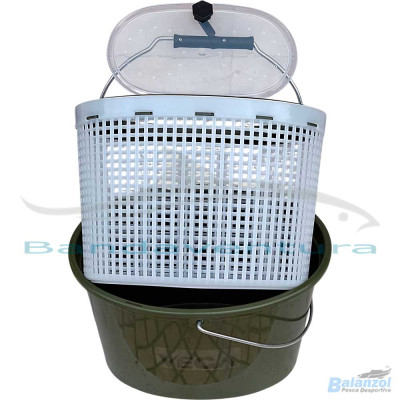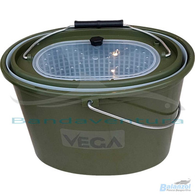 O balde viveiro da Vega tem a capacidade de 5 Lt ou de 10 Lt e é um balde ideal para o transporte de isco vivo ou até de peixe.