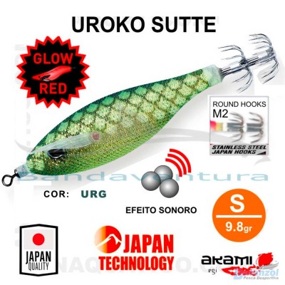 O AKAMI UROKO SUTTE é um palhaço barrigudo de eleição para a prática de eging. A sua qualidade excepcional e o desempenho notável destacam-no nas condições mais desafiadoras de pesca de chocos, lulas e polvos. A meticulosa construção e a utilização de materiais premium tornam-no imbatível na captura, sendo que a chave do sucesso deste palhaço reside no padrão de cores cuidadosamente estudado, simulando as escamas dos peixes, tornando-o irresistível. A textura suave, mas resistente, combinada com o efeito cromático e tratamentos UV nas cores, tornam-no mais visível em águas escuras. O seu corpo altamente fosforescente em tons avermelhados juntamente com as suas barbatanas em silicone também fosforescente é crucial para atrair a atenção das presas e desencadear seus instintos de caça. A robustez do UROKO SUTTE é garantida pelo seu corpo sólido, assegurando estabilidade e movimentos realistas na água. As suas agulhas, fabricadas em aço de alta têmpera, oferecem penetração eficaz e resistência duradoura. A versatilidade deste palhaço é um ponto forte, disponível em dois tamanhos e cores testadas em campo, adaptando-se perfeitamente às necessidades de qualquer pescador, seja um experiente ou alguém que iniciar agora a sua aventura no eging!