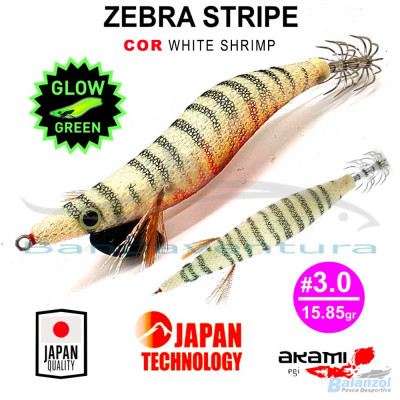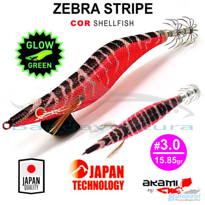O Akami Zebra Stripe é um palhaço com chumbo de alto desempenho, desenvolvido especificamente para a pesca de lulas e chocos. O seu design baseia-se na resposta visual instintiva dos cefalópodes, combinando um equilíbrio perfeito com uma estética irresistível.